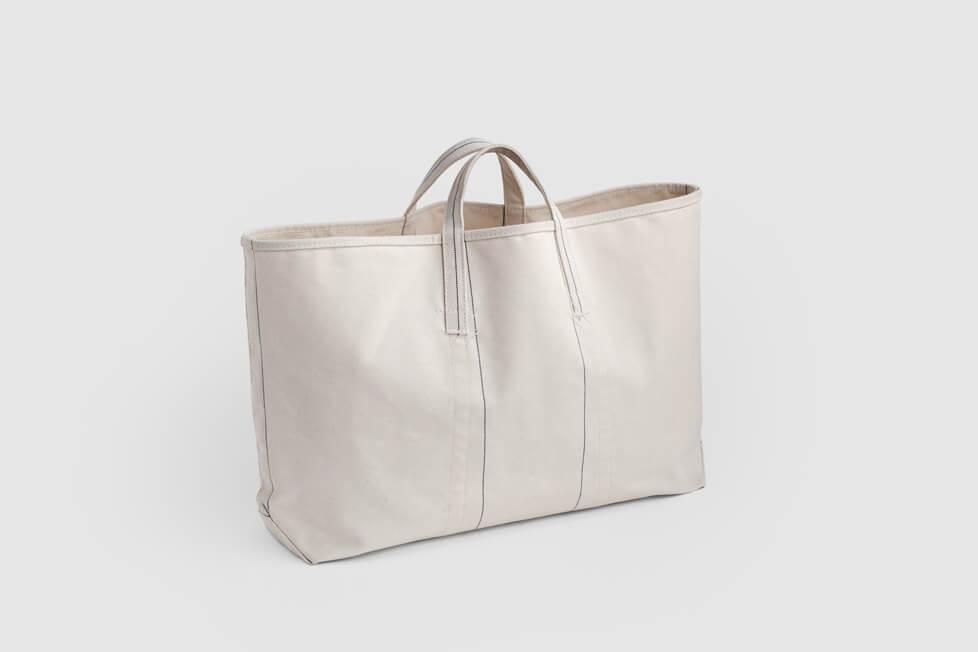 Studiolineの象徴的存在のひとつ、「COAL BAG」。かつて石炭運搬に用いられていたバッグをモチーフにレアジェムの哲学を落とし込んでアップデートされています。短めのハンドルが特徴的。